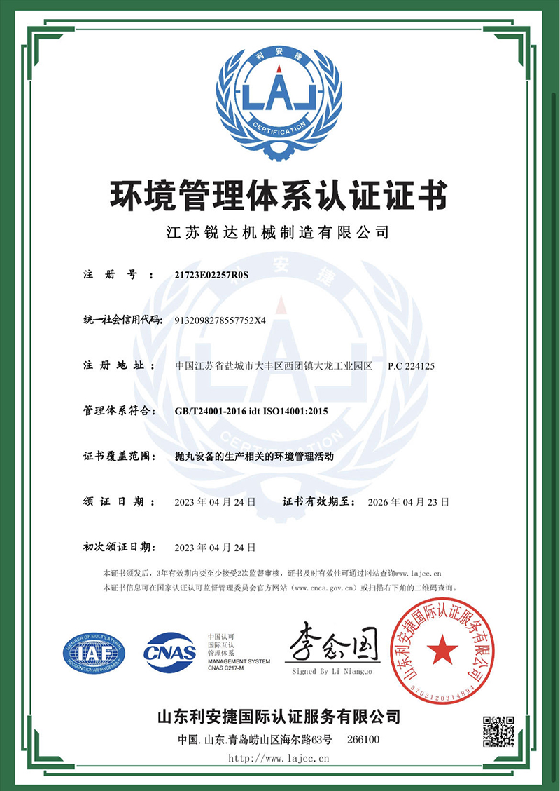 環(huán)境管理體系認證證書(shū)