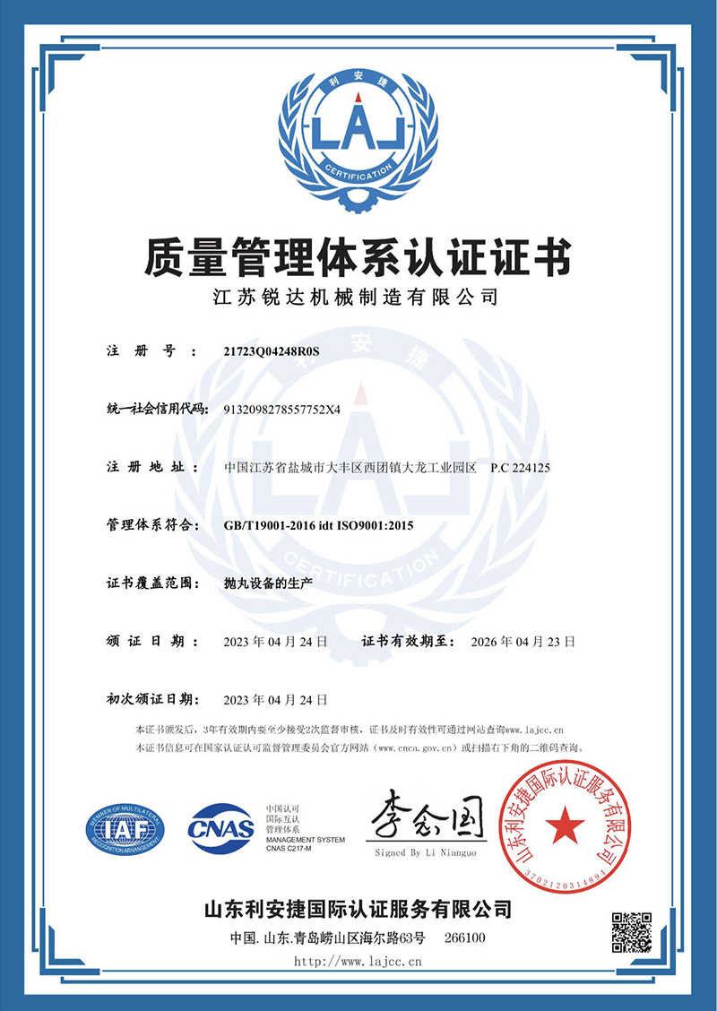 質(zhì)量管理體系認證證書(shū)